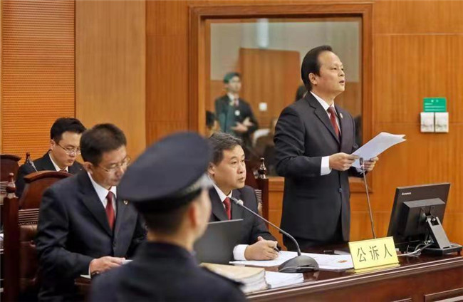 陕西省西安市检察院检察长张民生(右一)出庭支持公诉。