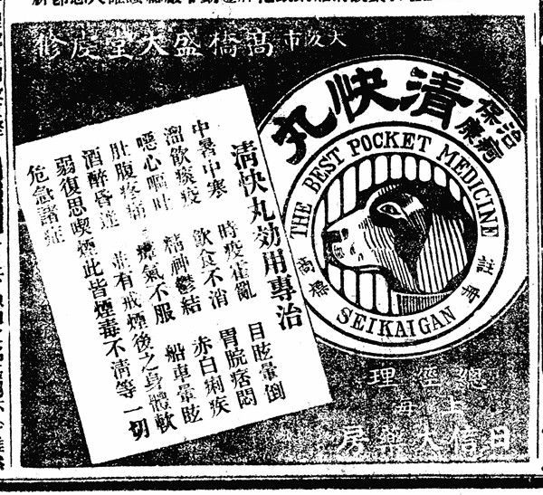 在1907年的广告语中,药商是这样解释“清快丸”这一名称的:“平常一二粒入口中含味,即芳香馥郁,立刻神清气爽,故名‘清快丸’,诚不诬也。”