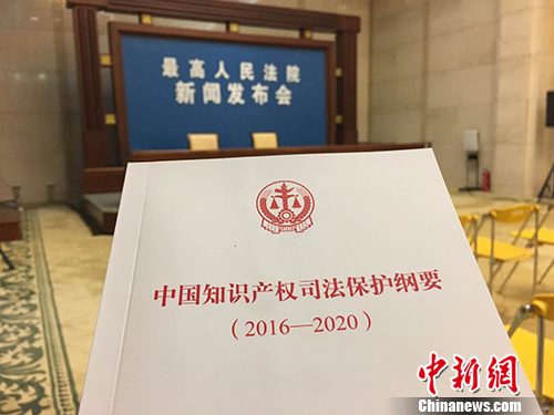 24日上午,最高人民法院在北京举行新闻发布会,启动2017年全国法院知识产权司法保护宣传周活动,并发布《中国知识产权司法保护纲要(2016—2020)》。