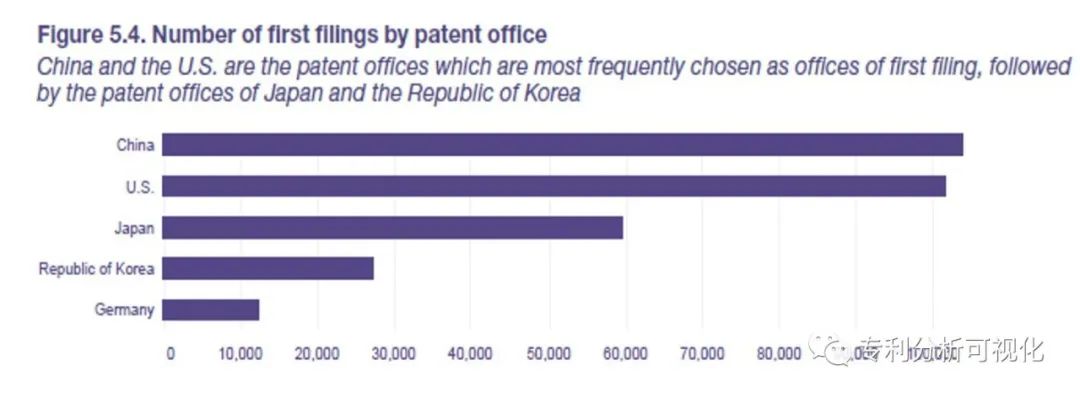 人工智能领域全球主要受理局受理的首次申请数量排名