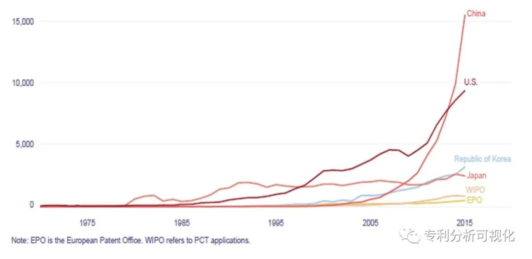 人工智能领域全球主要受理局受理的首次申请数量变化