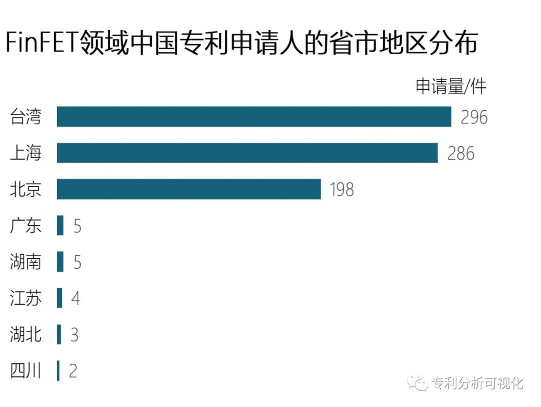 案例4:FinFET领域中国专利申请人的省市地区分布
