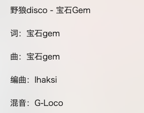 这首引起争议的《野狼Disco》创作于2019年4月,于2019年9月2日以单曲形式发行。音乐平台信息显示,该曲由宝石Gem作词作曲,Ihaksi编曲。齐鲁晚报曾报道称,这是一首宝石Gem“只花了两天就完成的快餐式作品 ”,是为了给酒吧热场而赶出来的作品。