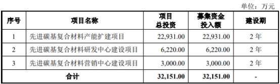 金博股份于2020年5月18日在上海证券交易所科创板上市,发行数量为20,000,000股,本次发行股份全部为新股,不安排老股转让,发行价格为47.20元/股,保荐机构(主承销商)为海通证券股份有限公司,保荐代表人为陈邦羽、吴俊。公司募集资金总额94,400.00万元;扣除发行费用后,募集资金净额为86,527.21万元,较原计划多54,376.21万元;公司2020年5月12日披露的招股说明书显示,公司拟募集资金32,151.00万元,计划用于先进碳基复合材料产能扩建项目、先进碳基复合材料研发中心建设项目、先进碳基复合材料营销中心建设项目。